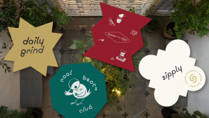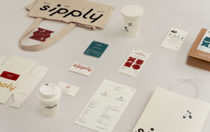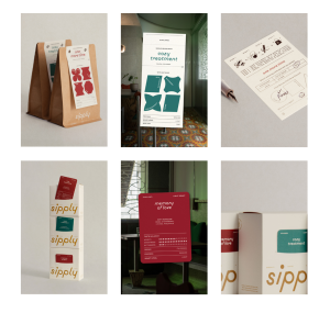 Nhận diện thương hiệu của Sipply được xây dựng xoay quanh logo chữ lồng “S”, thể hiện tinh thần kết nối và niềm đam mê cà phê. Logo này đi kèm với bộ chữ tùy chỉnh, phát triển thành phông chữ Siplings — một kiểu chữ hình học nhưng mềm mại, phản ánh cá tính tinh tế và hài hước của thương hiệu.